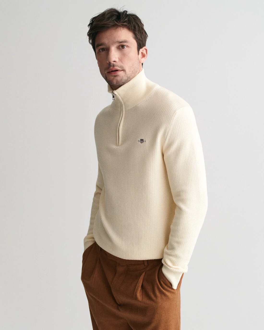 بافت اسپرت نیم زیپ اورجینال گانت Gant Micro Textured Cotton Half-Zip Sweater 7325707878664