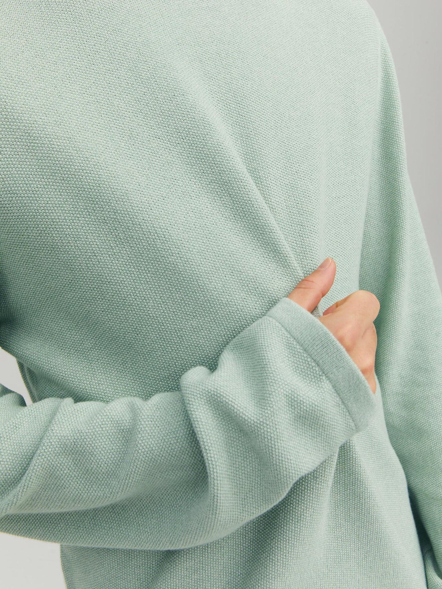 • بافت ریز و یکدست که به این پلیور جلوه‌ای صاف و متمایز می‌دهد و از دیگر مدل‌های ساده متمایز می‌کند.